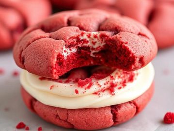 A rich, cocoa kissed cookie with a signature red hue - soft, chewy and finished with a beautiful cream cheese frosting.